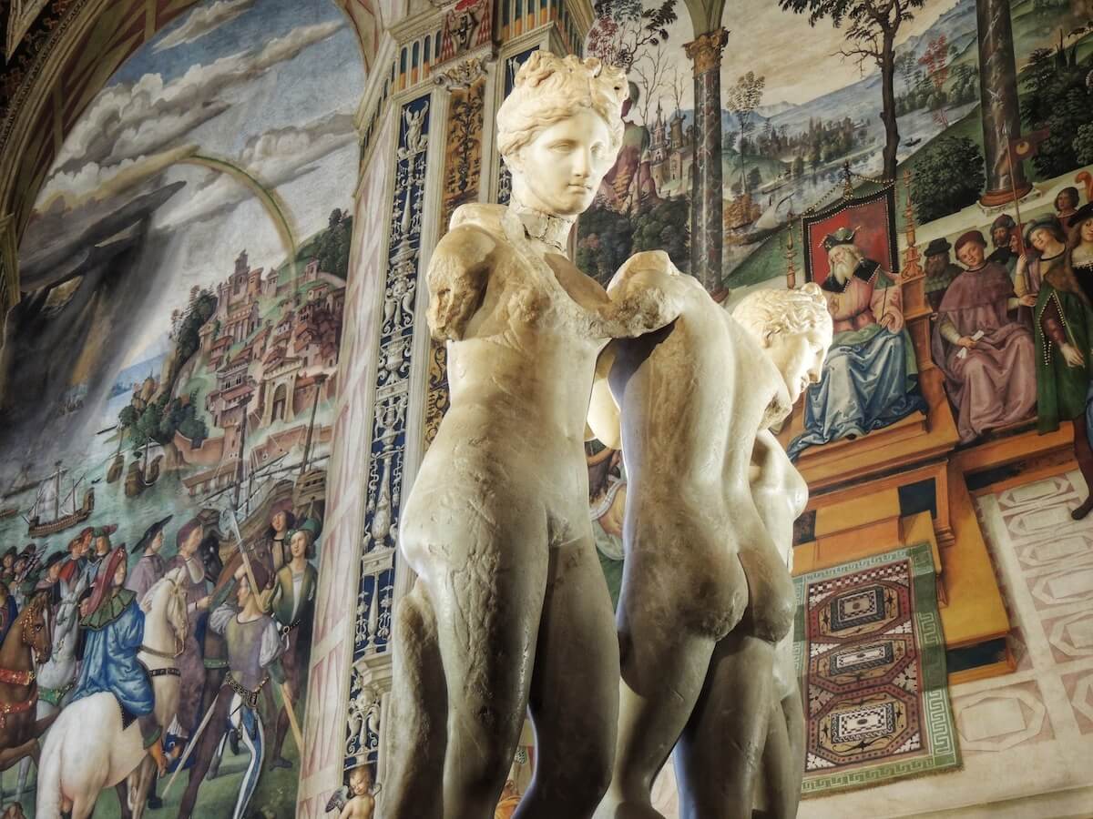 From Piazza del Campo, you continue to Piazza del Duomo, dominated by Siena’s extraordinary cathedral, clad in striking bands of black and white marble — colours rooted in the city’s founding legends. Inside, the Duomo reveals an astonishing concentration of artistic treasures. Your guide introduces works by Donatello, Michelangelo, Bernini, and masters of medieval and Renaissance art, explaining how these masterpieces reflect Siena’s wealth and devotion.