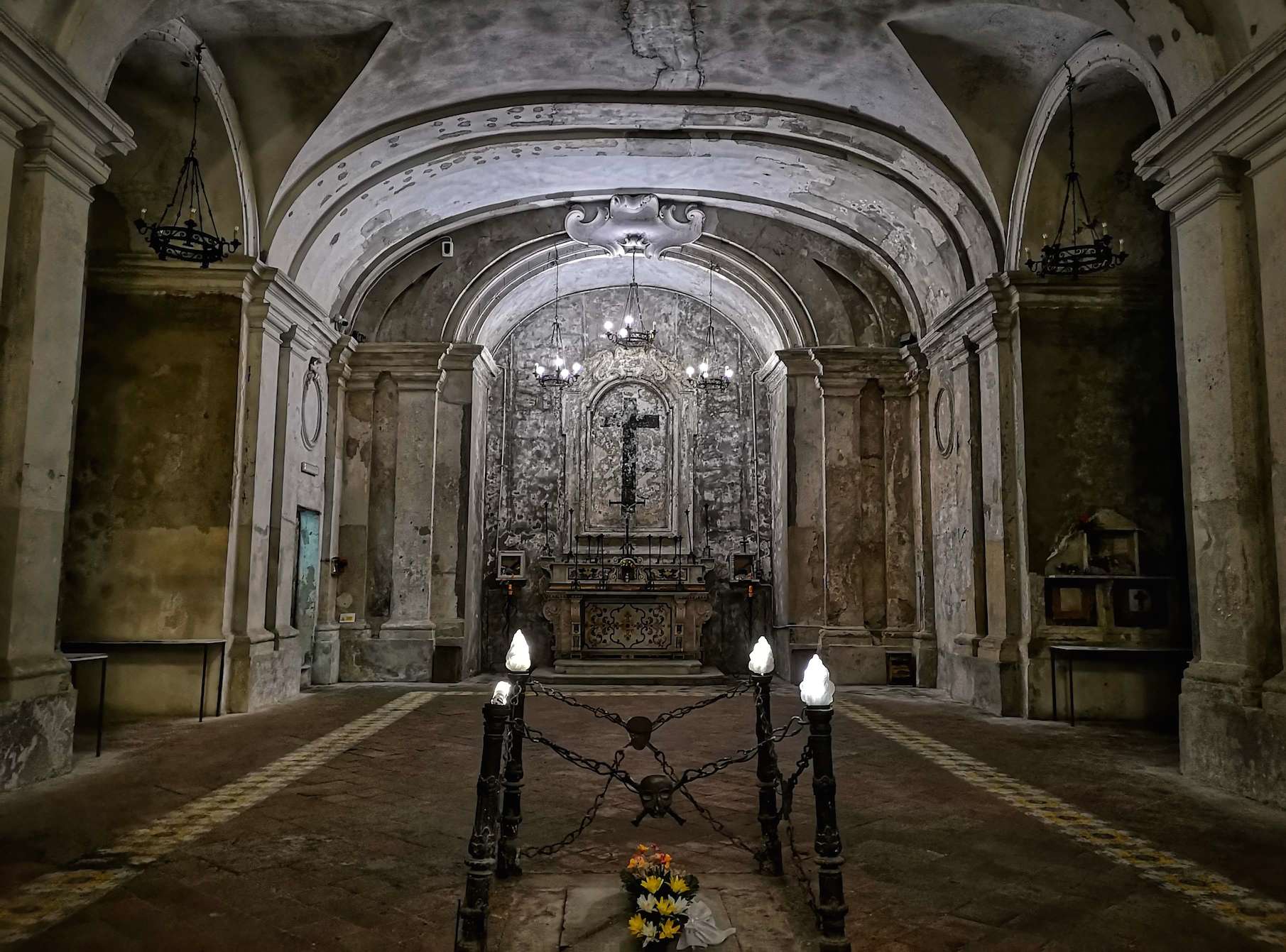 The eerie crypt beneath the Purgatorio ad Arco complex is where Neapolitans came to engage in the city's distinctive cult practices surrounding the dead, including adopting anonymous skulls, offering prayers to rescue their souls from purgatory.