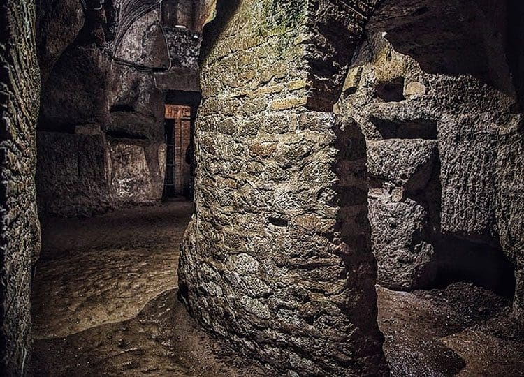 Concealed deep within the bedrock of the Roman countryside, a vast underground city of the dead lies dormant awaiting discovery. The remarkably well-preserved catacombs of Domitilla provide a fascinating window into the distant world of antiquity: carved out of the soft tufa rock, layer upon layer of labyrinthine tunnels stacked from floor to ceiling with narrow niches contain an inexhaustible supply of ancient Christian bones, macabre reminders of Rome’s role as the cradle of Christianity in the Imperial Roman world. Small rooms or cubicles open out from the maze to reveal the final resting places of families rich enough to enjoy the peace of private sepulchers. Navigating your way through the eerie maze with only dim lights illuminating the spooky way down towards the center of the earth is a seriously atmospheric experience. When one Antonio Bosio rediscovered the catacombs in the 16th century, the man known as the ‘Columbus of the Catacombs’ for his intrepid spirit spent 3 days down here wandering the tunnels in the pitch dark. If you join Through Eternity’s Underground Rome tour you’ll hopefully avoid Bosio’s fate – but expect a fright or two along the way.
