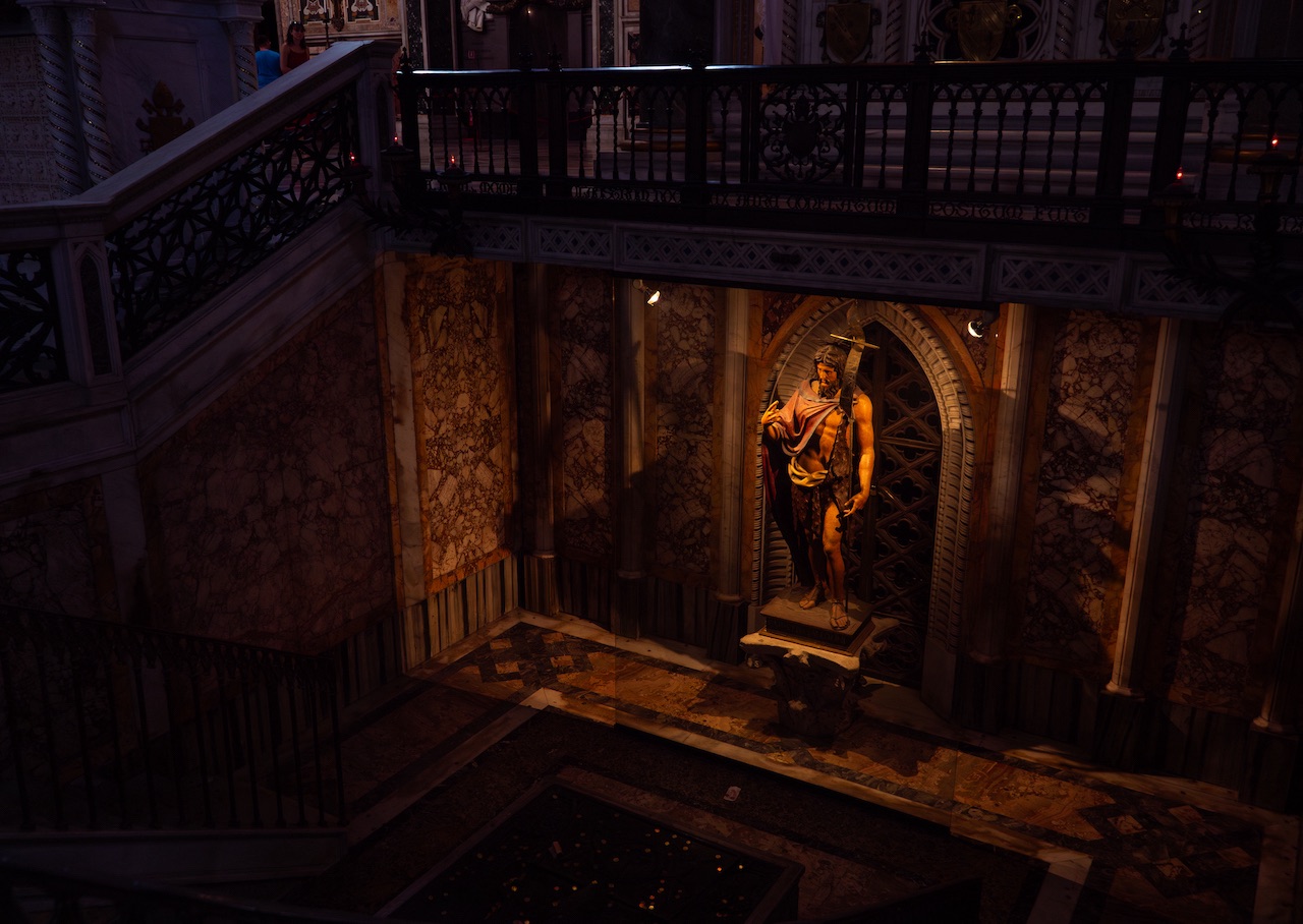 At the top of the steps, you’ll find the Sancta Sanctorum or “Holy of Holies.” Long before the construction of the Sistine Chapel, the Sancta Sanctorum was the private chapel of the popes and home to some of the most important relics in Christendom. Some relics have been lost or moved, but many remain, including an ‘Acheiropoeta’ (from the Greek: ‘not made by human hand’). It is an ancient image of Christ Pantocrator, said to have been begun by Saint Luke but completed by angels
