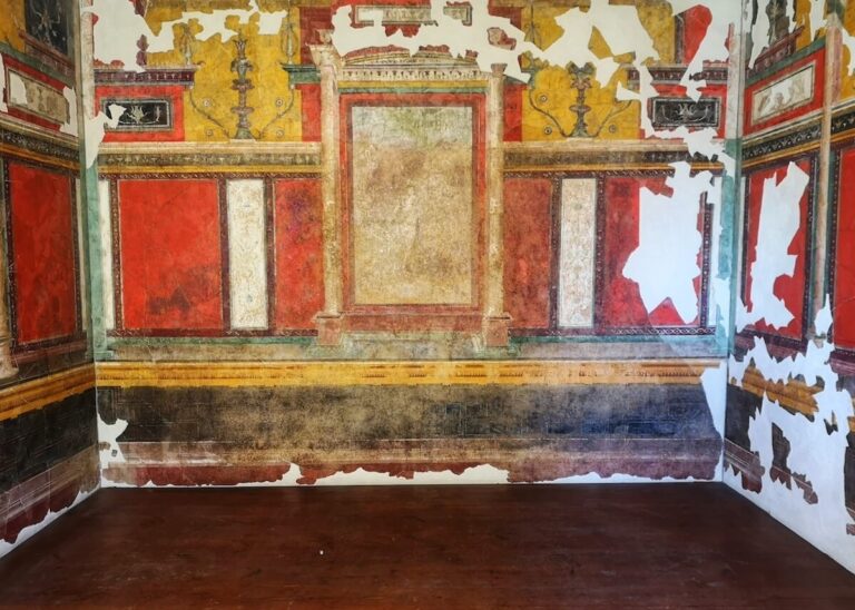 The room is adorned with frescoes that feature Egyptian motifs, such as obelisks and gryphons, interspersed with elaborate candelabra, plants, and fantastical creatures. These decorations suggest a blend of Roman and Egyptian influences, reflecting the empire’s expansive reach and Augustus’ desire to associate himself with the grandeur of Egypt.