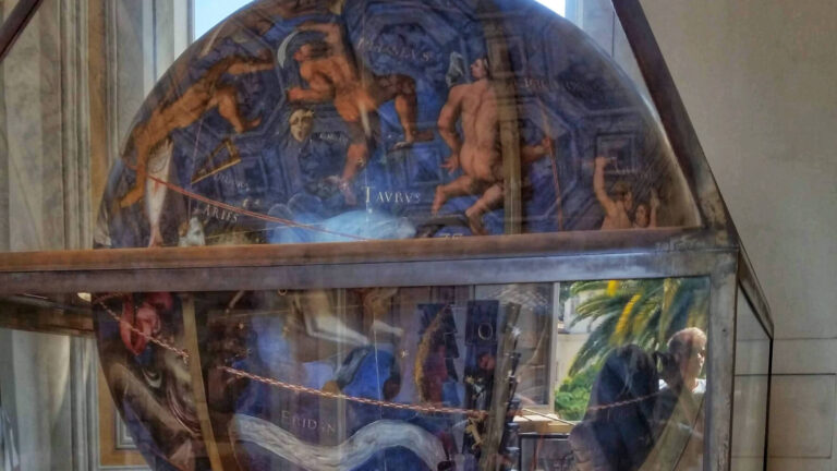 The globe was made for the Austrian born noble Markus Sitticus Altemps (whose Roman palace is now a museum in the heart of the city), and provides a stunning example of the 16th century’s burgeoning interest in the scientific study of the cosmos. The entire gallery housing Vanosino’s globe is worth checking out for its collection of early-modern cartographic, astrological and scientific instruments and artworks.