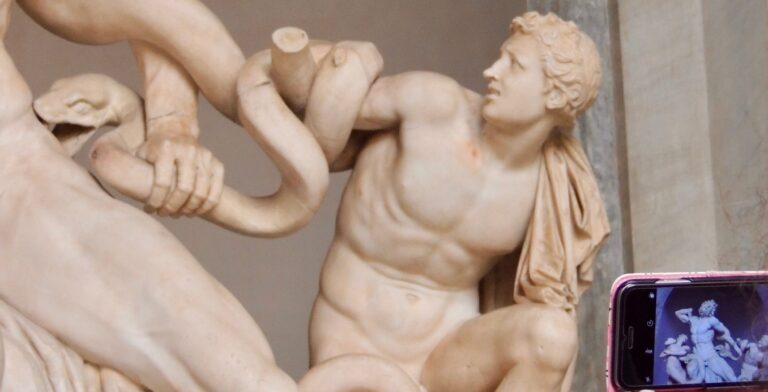 The Octagonal Courtyard is part of the Vatican Museums, so you’ll need to purchase a ticket to the museums to visit the chapel. Tickets to the Museums cost €20 (plus booking fee of €5). Book your ticket in advance online from the official Vatican museums website to allow you to skip the lines, or join of Through Eternity’s expert-led Vatican Museum Tours.
