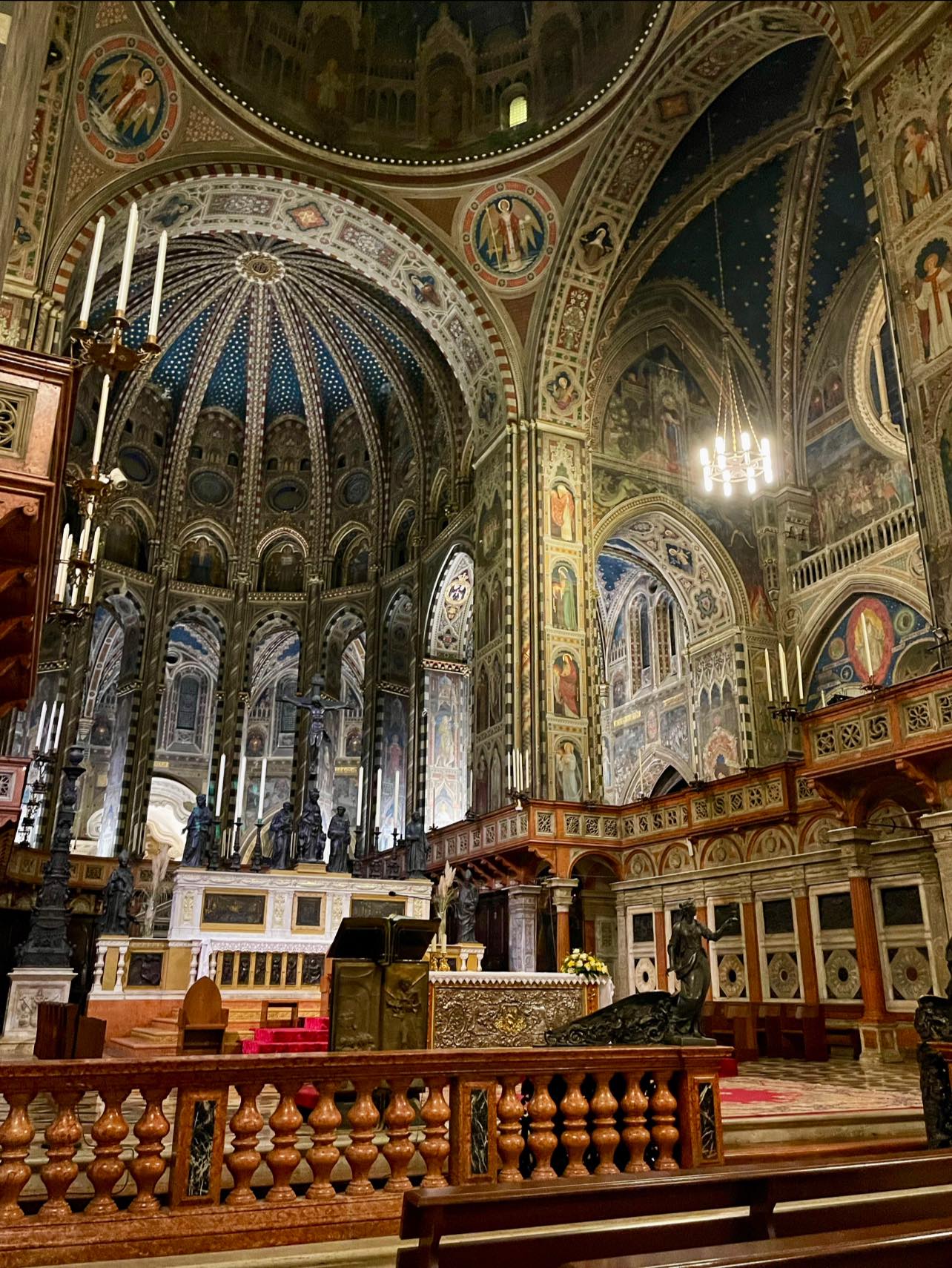At the heart of everything in Padua is its massive, dizzying cathedral, and the Basilica di San Antonio will be one of the highlights of our itinerary. Begun in 1233 just a year after the eponymous Anthony’s death as a fitting burial place for the revered saint, the vast basilica is a fascinating mish-mash of architectural styles and cultural influences. A massive and forbidding Gothic brick edifice supports sinuous oriental domes that loom over Donatello’s equestrian statue of Gattamalata in the piazza outside – a landmark of Renaissance sculpture dating from 1453.